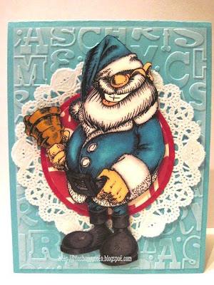 Used black, white and reds with a little bit of green for the leaves on the apples. Found some gingham black and white paper in my stash and mounted it all on red cs and tied it off with a red ribbon. Handwrote Happy Birthday! all over the card, then with the help of a square SB I drew in the border. Oh yea I almost forgot! There is a black postage stamp behind Snow White. I'm really lovin' that die.