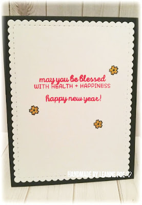 Hehehe, the little hat is so cute. I guess I could have lowered it a little bit more on his head, nah looks just right. Such a sweet combination of images. The red envelope he's holding is from the Lunar Extra set. Lots of fun images in that set. Since these were cards I also did a simple message on the inside: